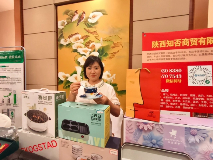 商会理事会成员,陕西知否商贸有限公司在现场精心布置了一处展示专区,总经理左桂琴满怀热忱地向参会嘉宾介绍了企业的特色产品。